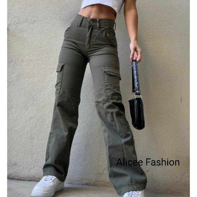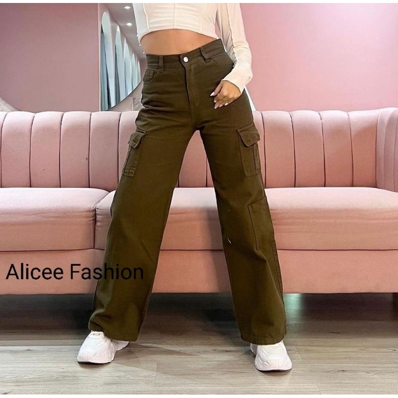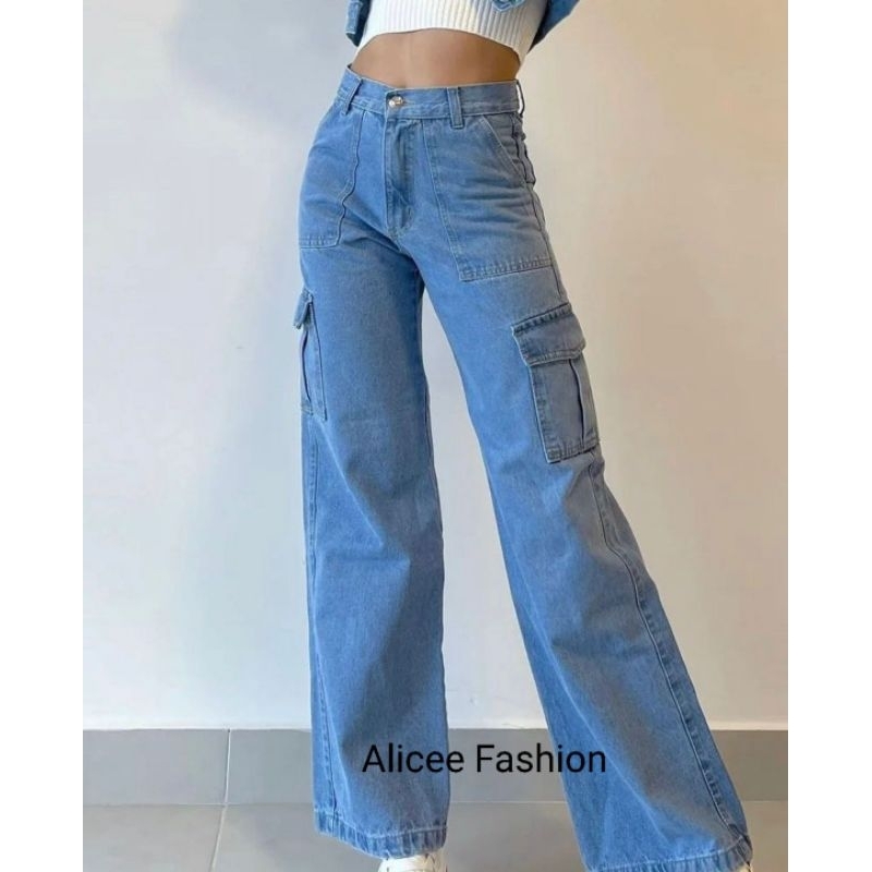 Celana jeans cargo wanita highwaist | highwaist cargo jeans wanita