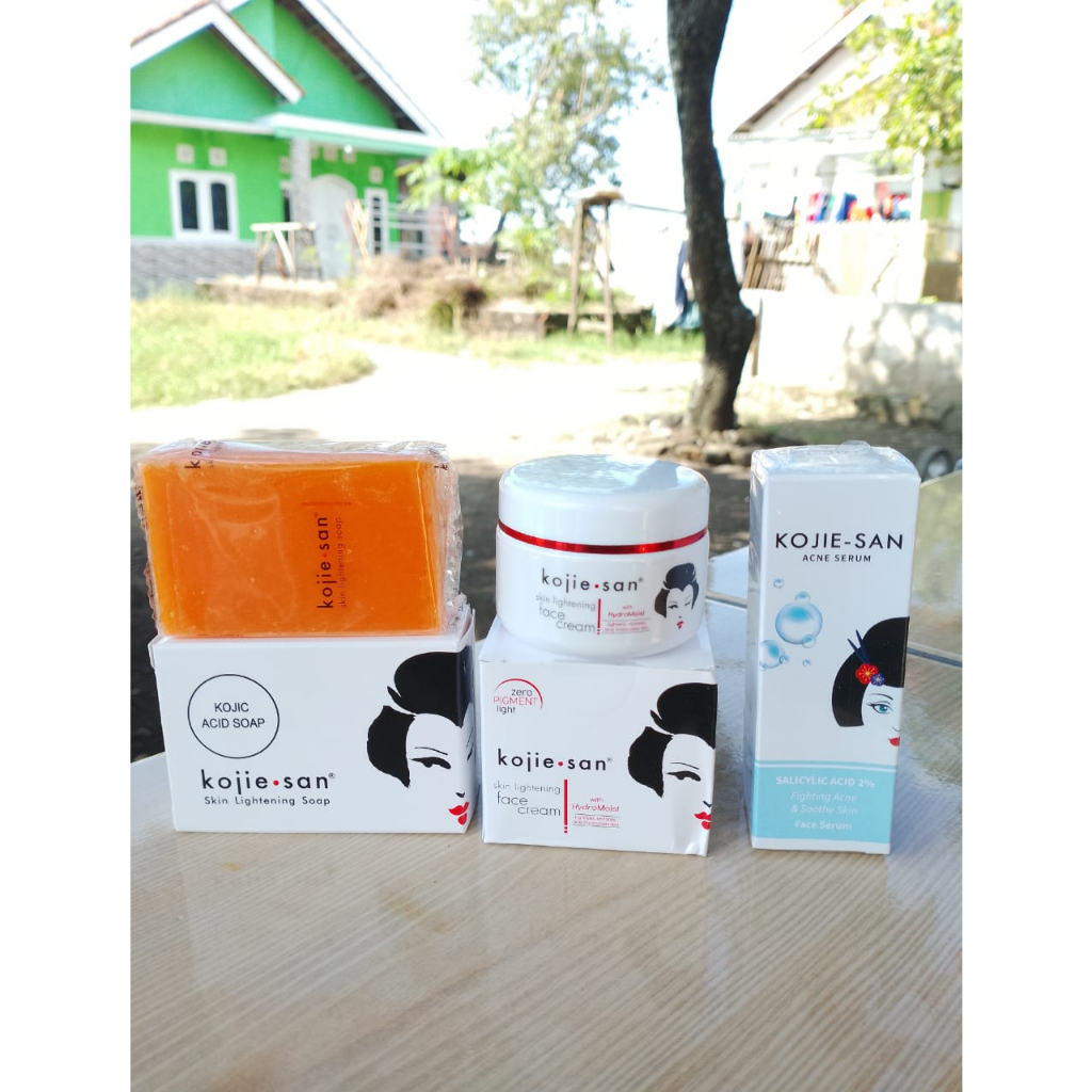 Paket Kojisan + Serum / Kojie san 3 in 1 / Face Lightening Cream 30gr / Kojic Acid Soap 65gr / Serum Kojiesan 25ml Origi