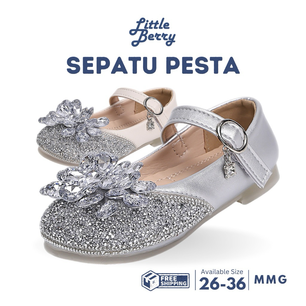 LITBERRY FREE BOX Sepatu Sandal Pesta Flats Anak Perempuan Mutiara Elegant Kulit Usia 3 - 12 Tahun Type MMG