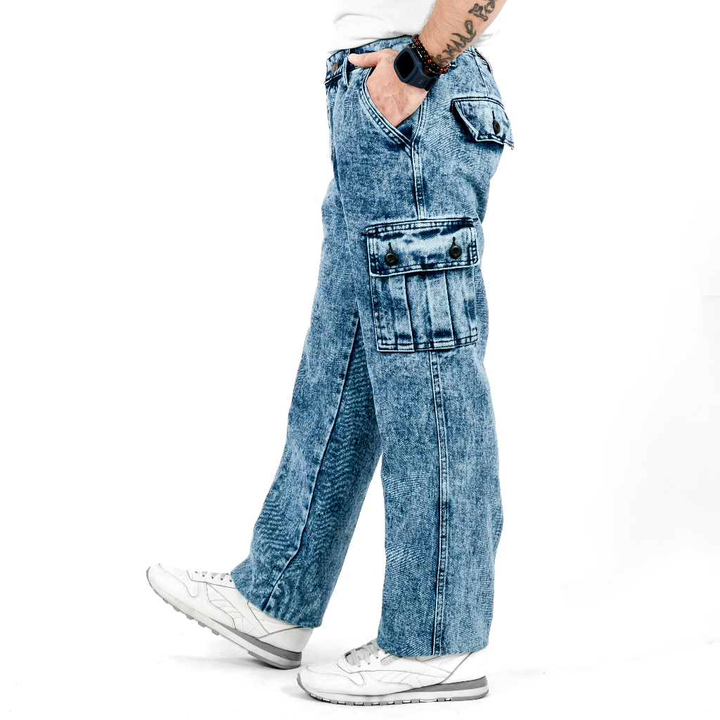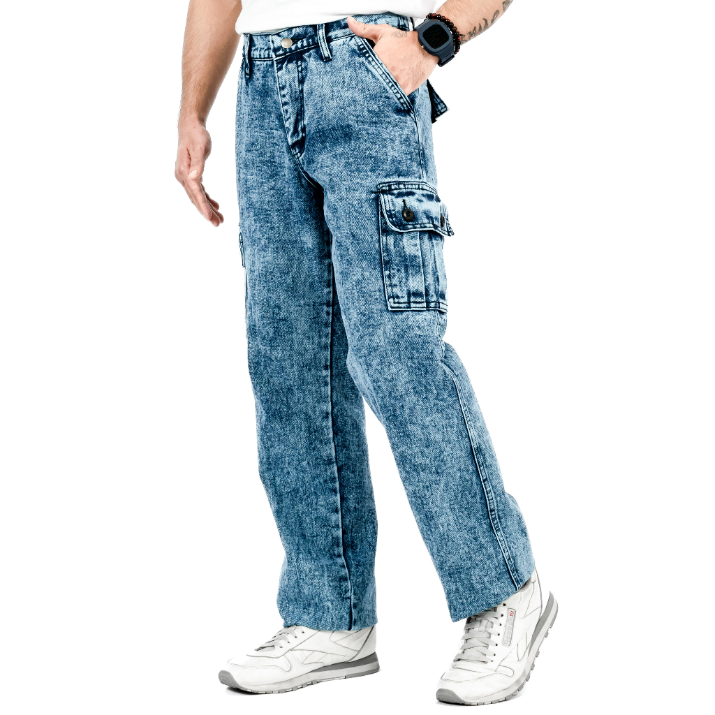 Gizmo Celana Cargo Jeans Pria Loose fit reguler gombrong Skena / Cargo pants Jeans Reguler Standard Denim washed Blue sandwash