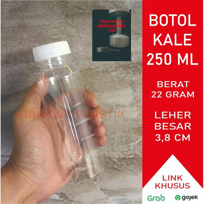 ISI 100 PCS BOTOL KALE 250 ML BOTOL PLASTIK KALE 250 ML 22GRAM BOTOL KOPI BOTOL SUSU - GLOSSY HITAM, PACKING PLASTIK
