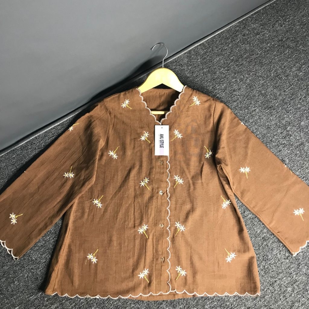 Atasan Bordir Wanita Maharani Linen Shirt Bordir Bunga-Bunga Adem Elegan