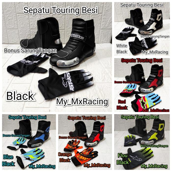 sepatu touring besi BONUS SARUNG TANGAN sepatu sunmori or riding bots sefety sepatu berkendara anti