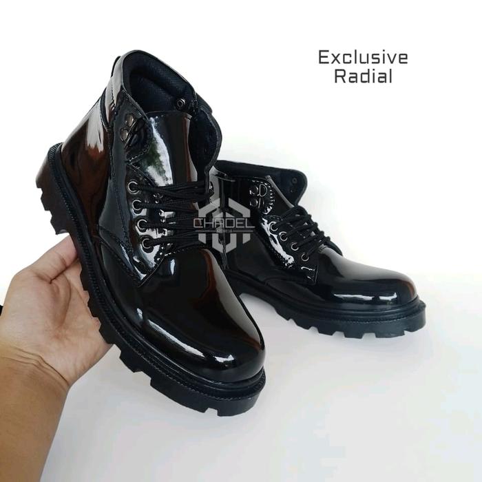 Sepatu PDH Tinggi Resleting Autsol Radial Satpam Security Hitam Kilap dan Doof untuk Kantoran,