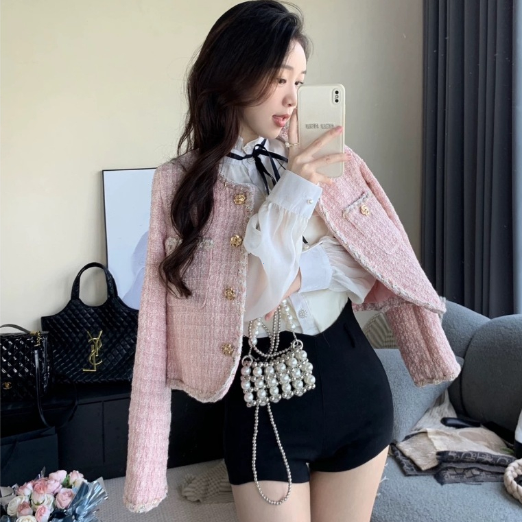 Blazer Crop Pink Susana Mall Mewah Outer Korea Style Elegan Wanita M595