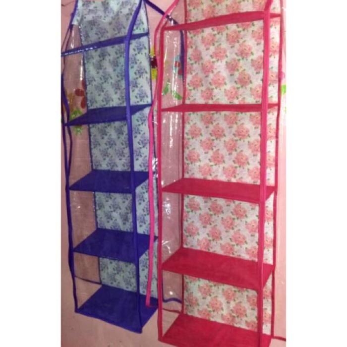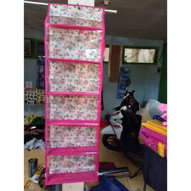 RAK TAS GANTUNG JUMBO MOTIF BUNGA ALAS FUL TRIPLEK PINK - BUNGA BIRU