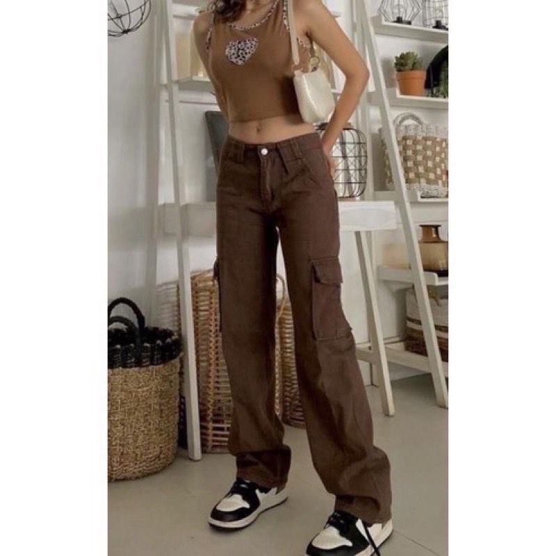Celana Jeans Wanita | Celana Cargo Jeans Wanita | Celana Highwaist Cargo Jeans | Celana Jeans Cargo Kantong Samping