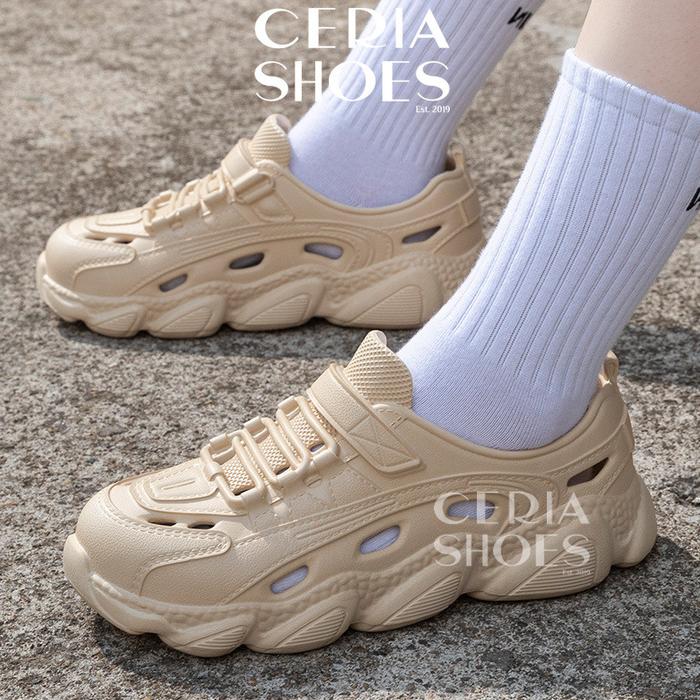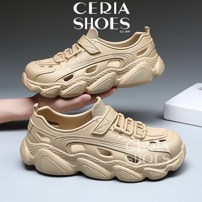 SEPATU KARET PRIA WANITA IMRT BAHAN EVA RINGAN SOL ANTI SLIP MODEL SLIP ON SHOES FLAT - KHAKI, 3536