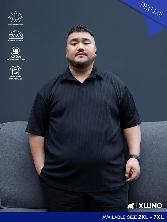 XLUNO CARL LO BLACK BAJU LO PRIA JUMBO KNIT BIG SIZE LENGAN PENDEK - 2XL