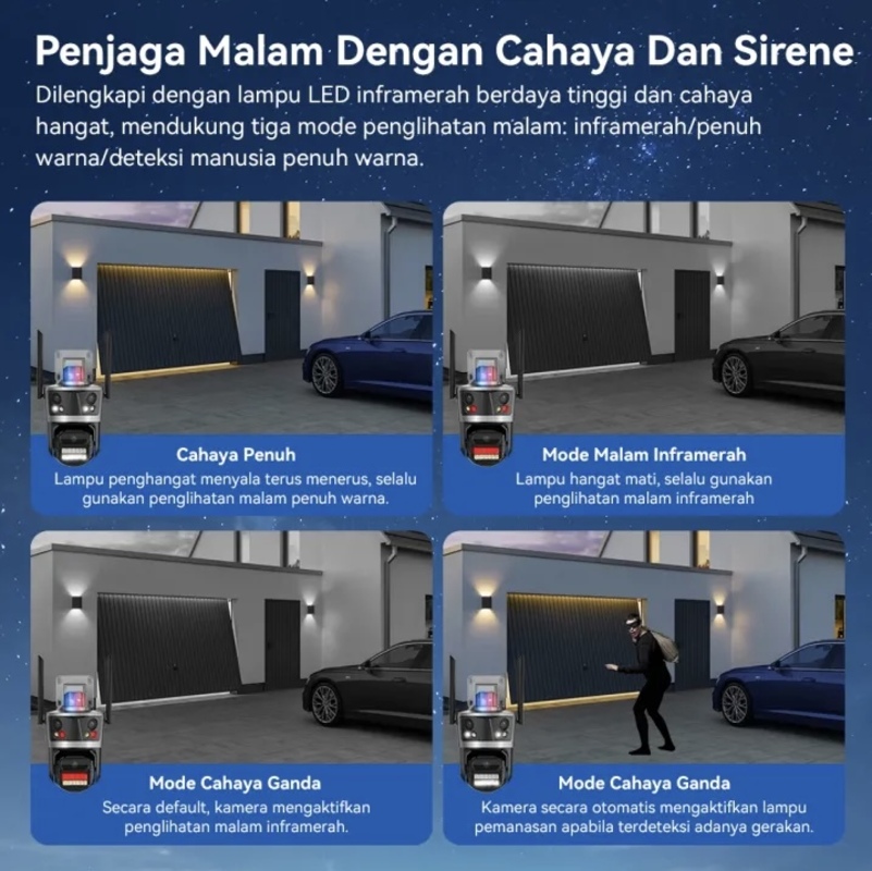 ICSEE CCTV ip 12MP 6K Tiga lensa Kamera WiFi PTZ Pelacakan Otomatis