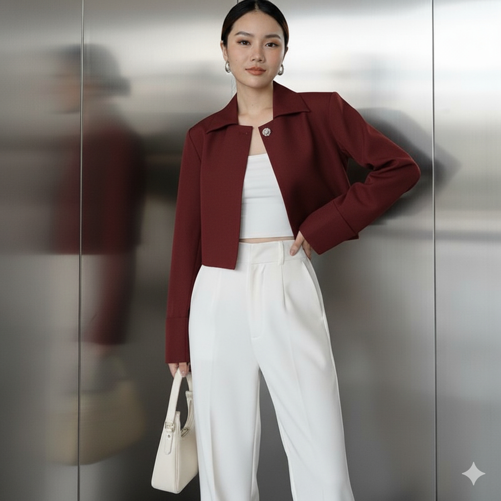 Blazer Wanita Crop West Blazer Semi Wol First Hand