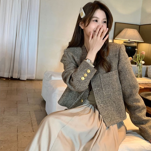 Blazer Wanita Crop Susana Mall Warna Coklat Gaya Modis Korea Style M594