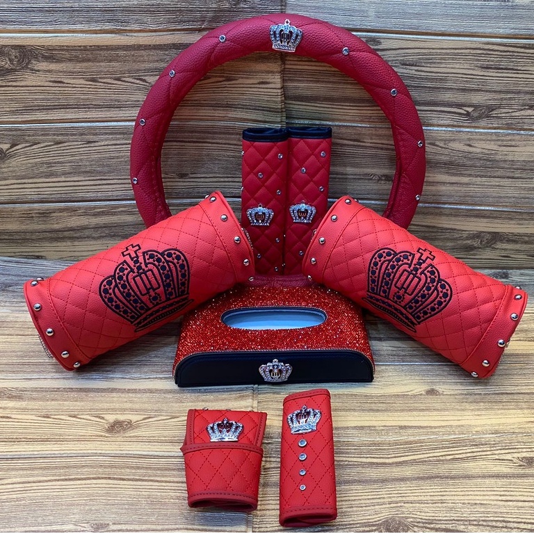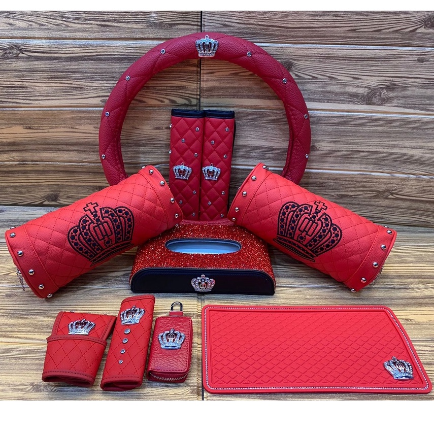Set Aksesoris Mobil DAD Crown Mahkota Luxuries Kulit Merah