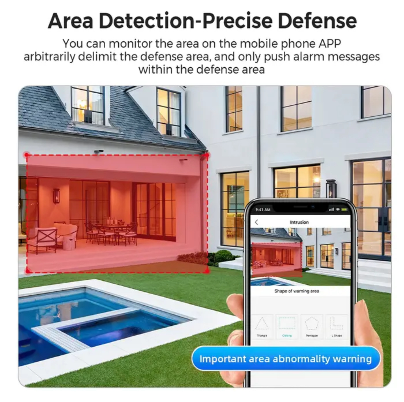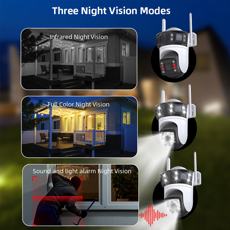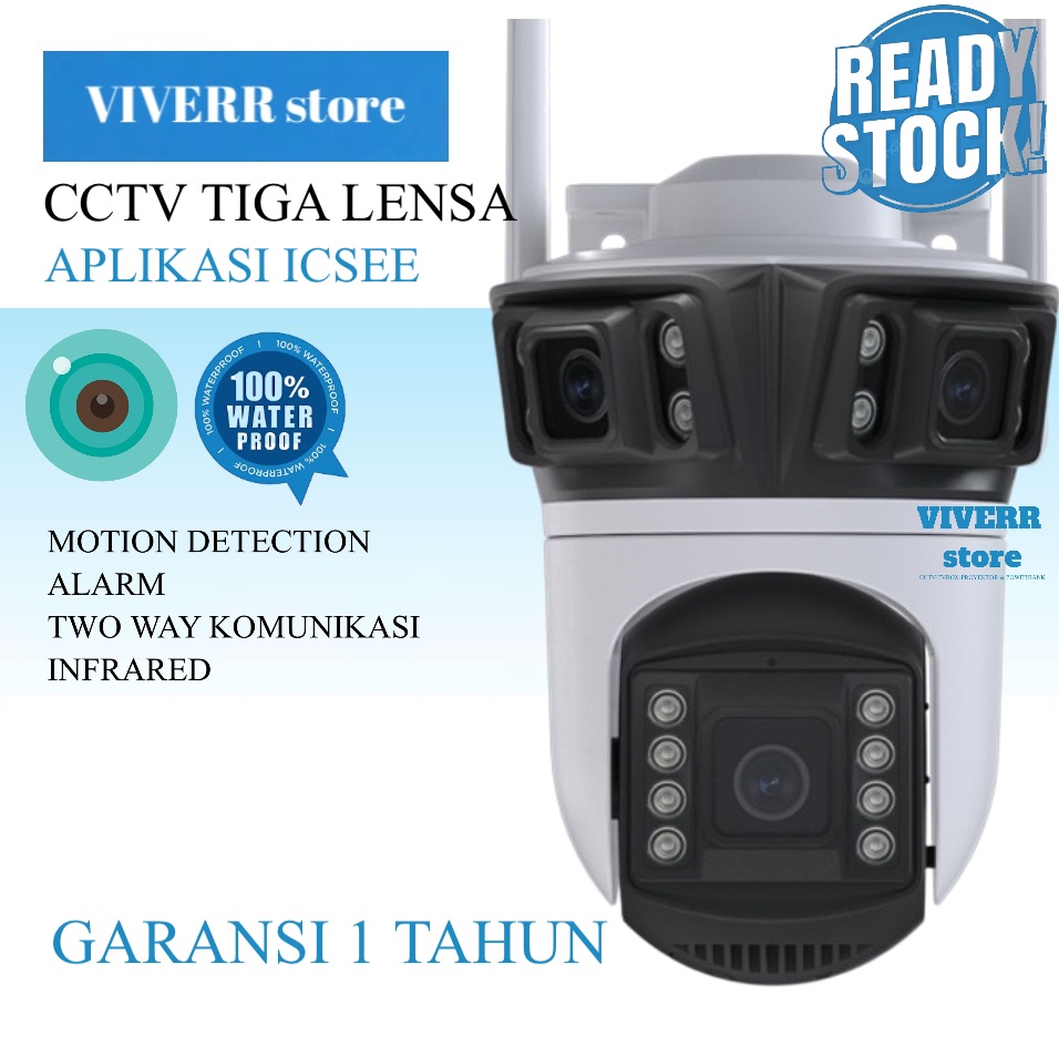 Kamera ipcam cctv icsee tiga lensa tiga layar Pelacak PTZ 12MP IP66 Tahan Air dengan PIR dan Deteksi Gerakan