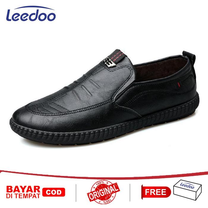 LEEDOO SEPATU SLIP ON HITAM PRIA SEPATU KULIT KERJA FORMAL SEPATU KULIAH SEPATU SEKOLAH SISWA MC446 - HITAM, 39
