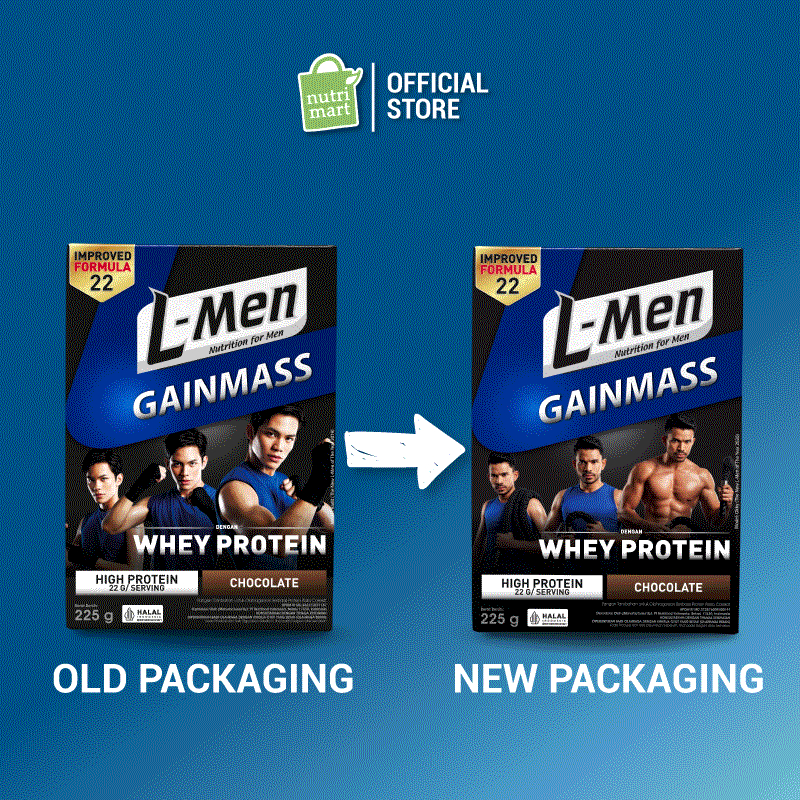 L-Men Gain Mass Chocolate 225 gram - Suplemen Penambah Massa Otot Tinggi Whey Protein