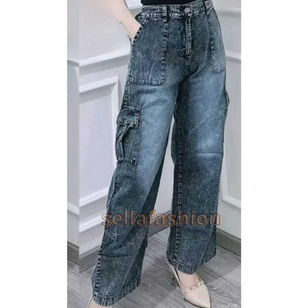 CELANA KULOT SELLA JEANS CULOTE CARGO JUMBO KANTONG AKTIF