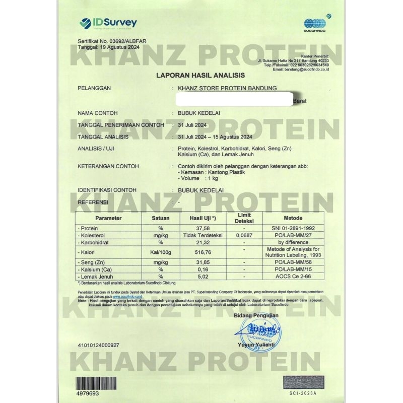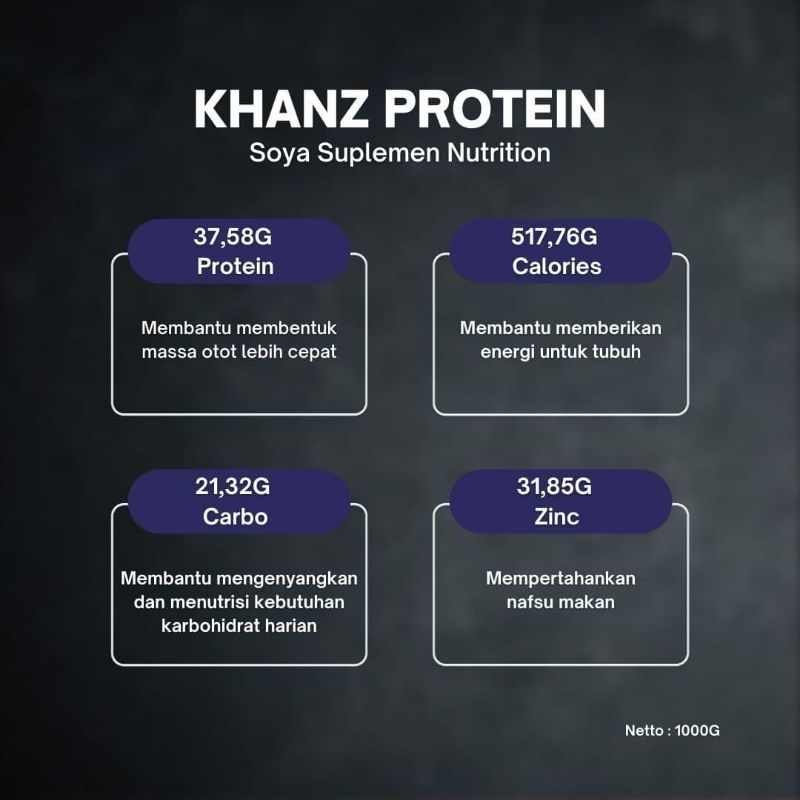KHANZ Whey Protein Nabati 1000gr Susu Kedelai Bubuk Tinggi Protein –Coklat/Vanilla