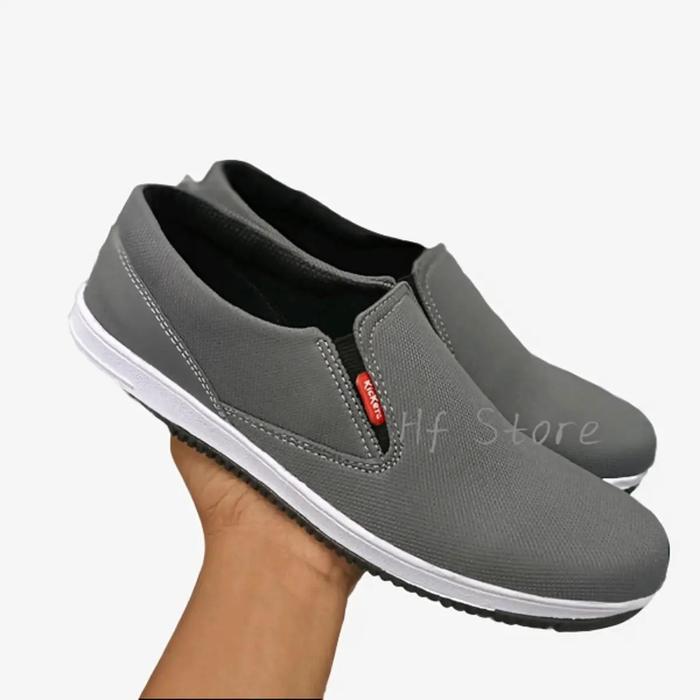 SEPATU CASUAL PRIA SEPATU SANTAI KERJA PRIA HF07 SRT FLAT SHOES ANTISELIP SIMPEL SANDAL SLIP-ON & SEPATU FLAT - ABU HF 07, UKURAN