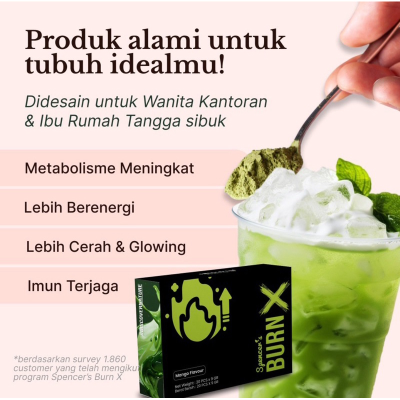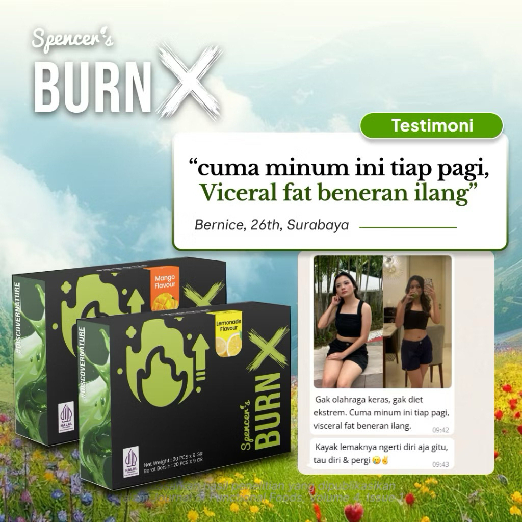 BIG SALE BONUS EMAS+SHAKER+1 SACHET SPENCERS BURN X Lemonade Mango - 1 Box 20 Sachet Pembakar Kalori dan Lemak Alami Pen