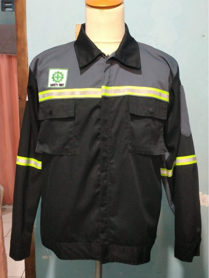 WEARPACK SAFETY BAJU PROYEK KATELPAK WARNA HITAM ABU PANJANG BORDIR KERJA - HITAM ABU, M