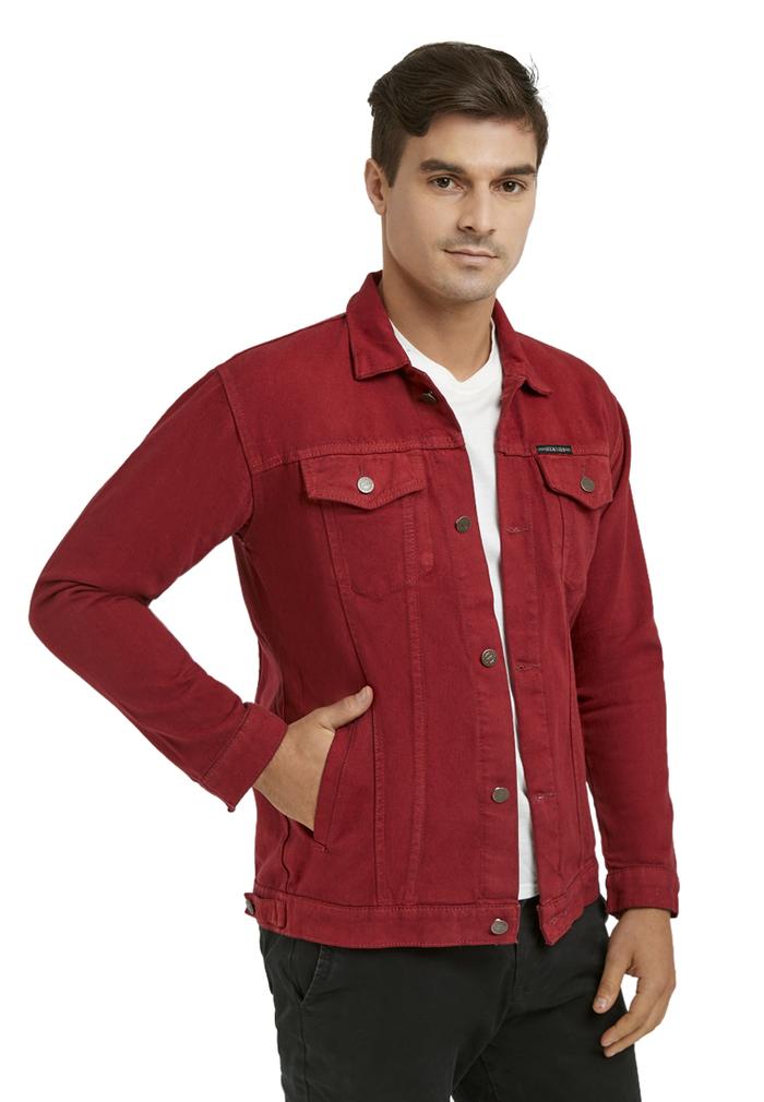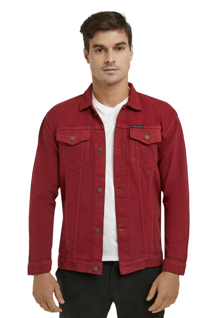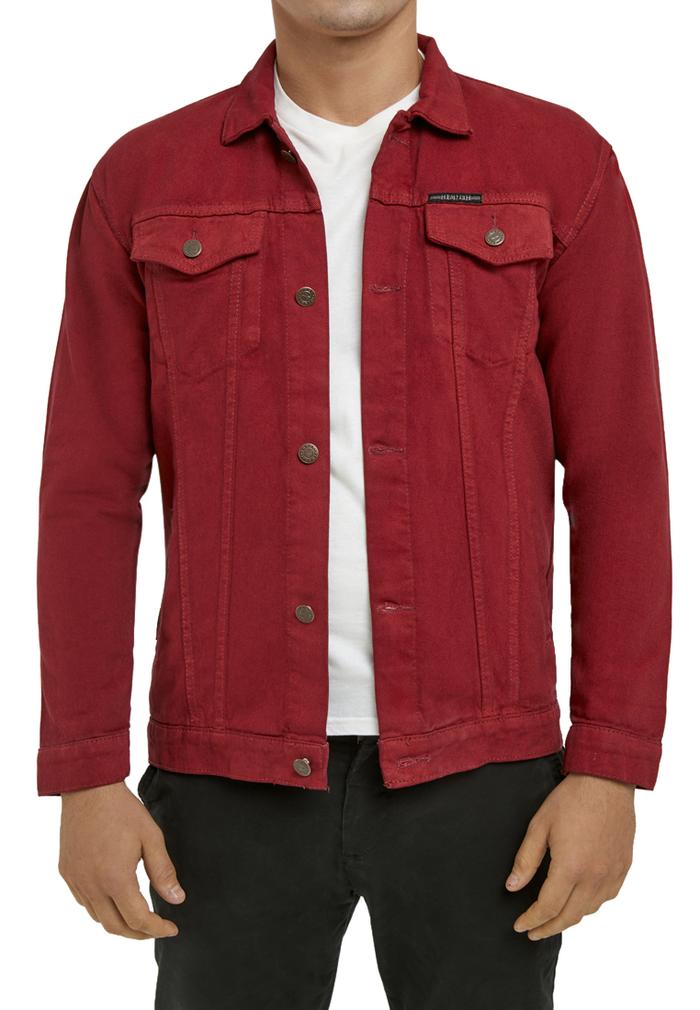 HEMMEH JAKET DENIM MAROON LOS JAKET JEANS MERAH LOS JAKET JEANS PRIA MERAH LOS - L
