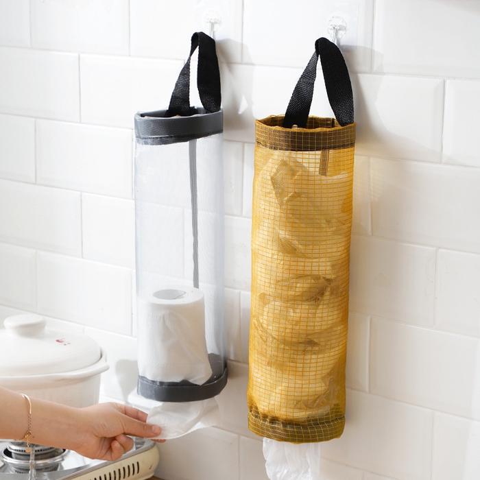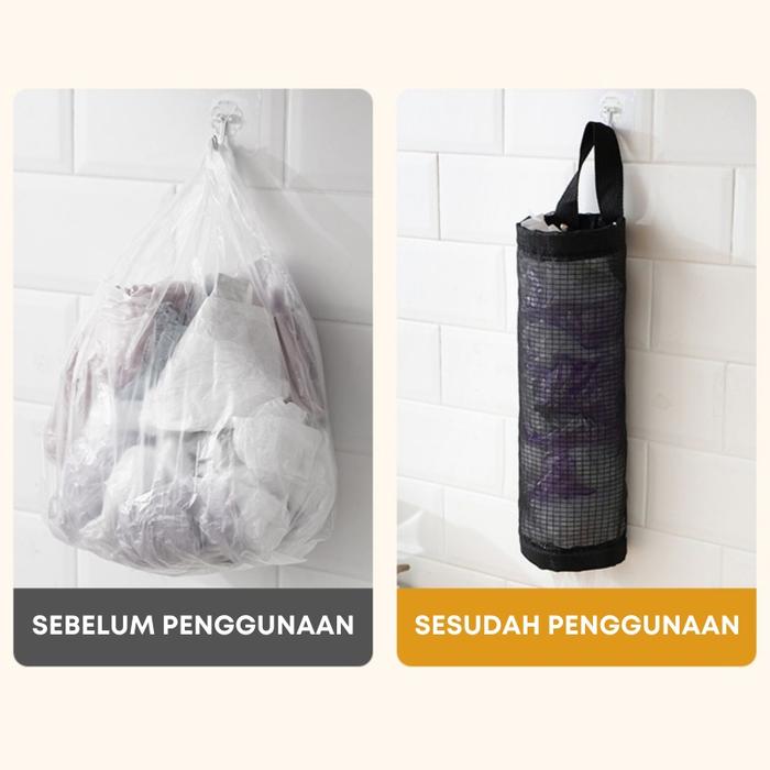 HL0358 TAS TEMPAT PENYIMPANAN KANTONG PLASTIK BENTUK TABUNG STORAGE GANTUNG JARING MULTIFUNGSI KERANJANG KAIN - HITAM