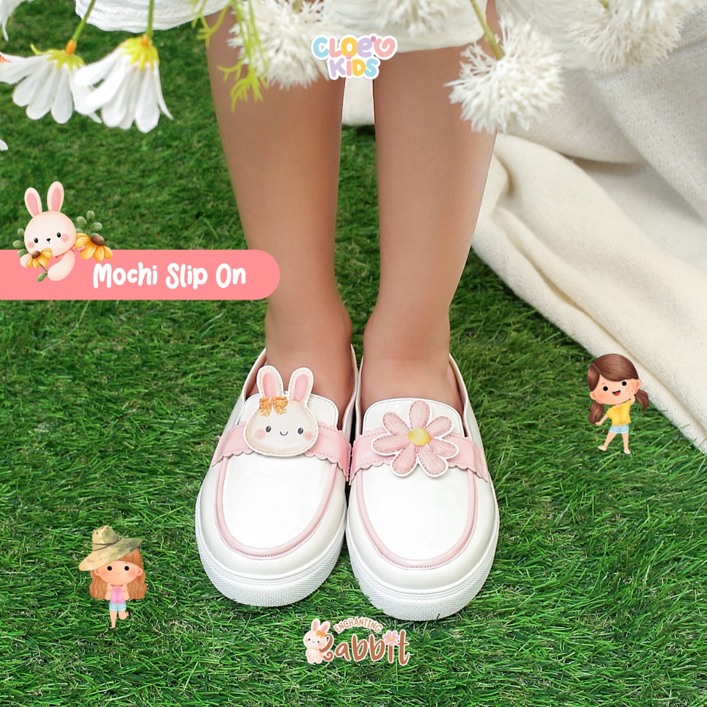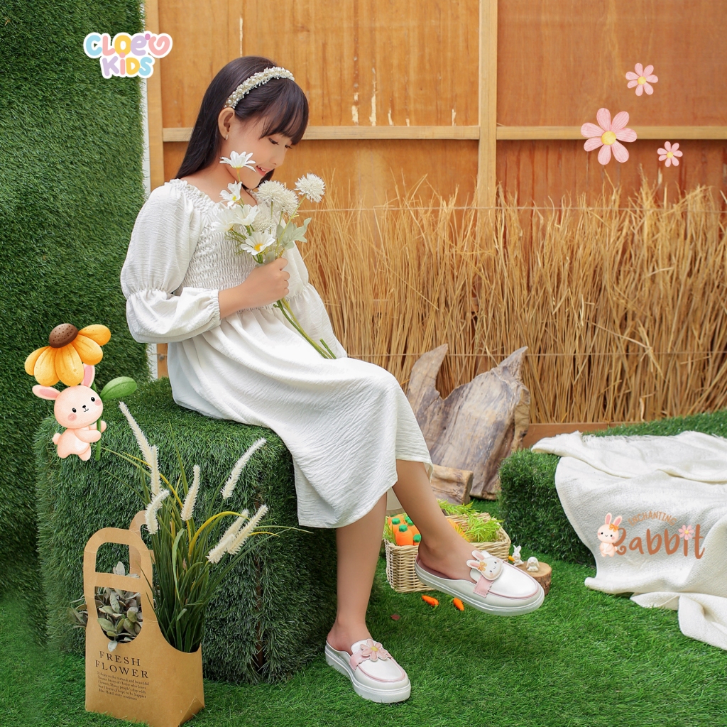 CLOEVKIDS - Mochi Size 22-35 Sepatu Sandal Bustong Anak Perempuan Slip On Flat Lucu - Enchanting Rabbit