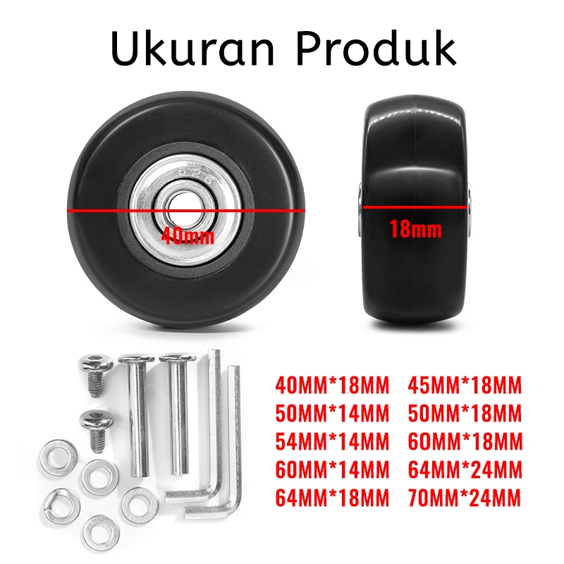 2Pcs/Set Wheels Roda Koper Replacement Pengganti 40/45/50/60MM18 MM