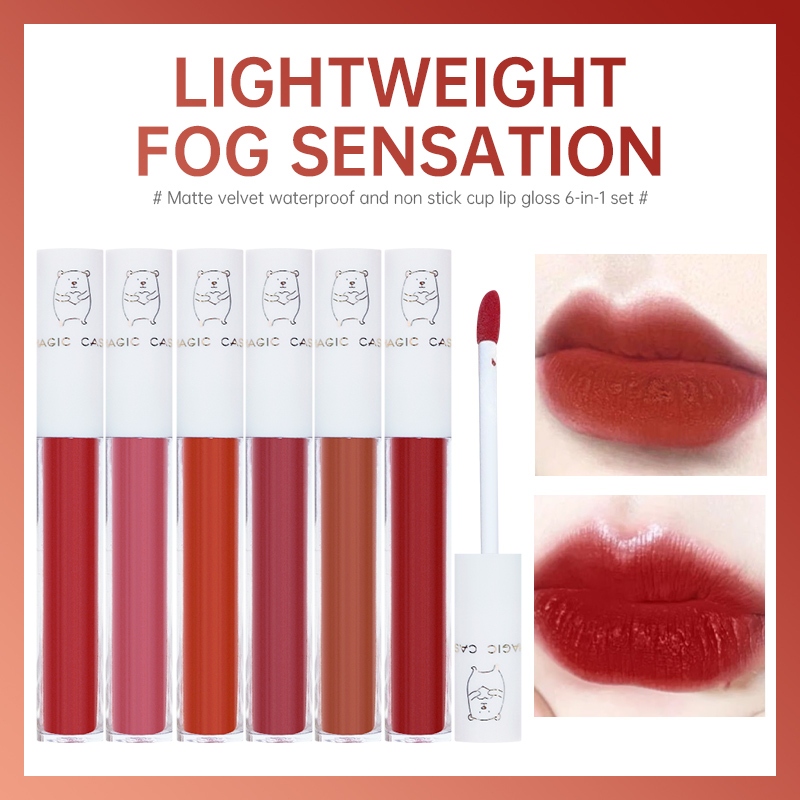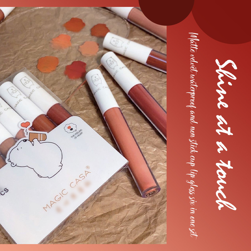 MAGIC CASA Lip Gloss Love Heart Bear 6-in-1Set Lipstick Velvet Matte Non-stick-Windwind