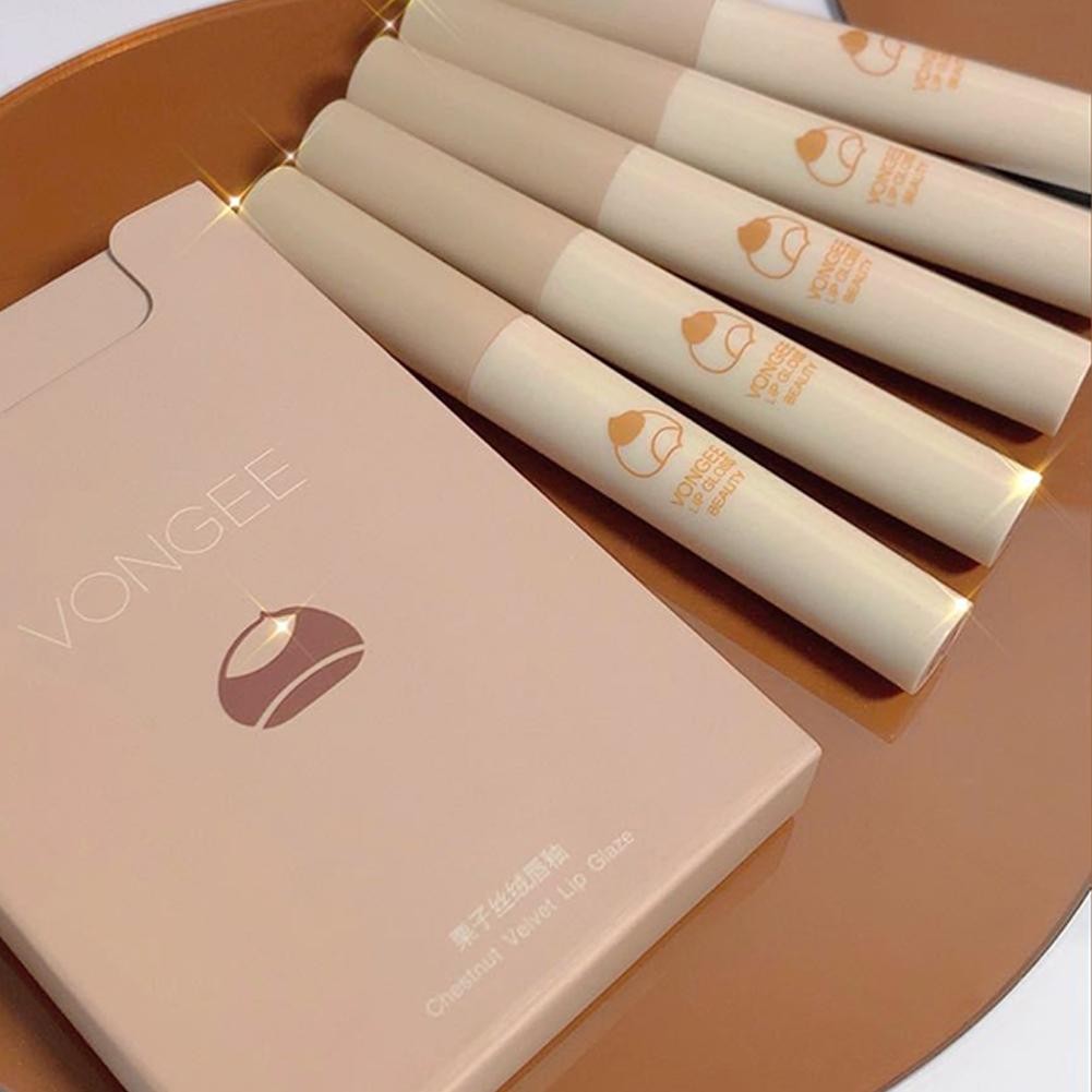 Set Lip Glaze Chestnut, Matte Lip Tint Lipstik Matte Frosted Velvet, Gaya Pelajar,Tidak Mudah Pudar Lipstik Dengan Wadah