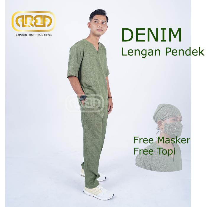 SET BAJU OKA SERAGAM MEDIS DENIM LENGAN PENDEK - BLUE JEANS, S