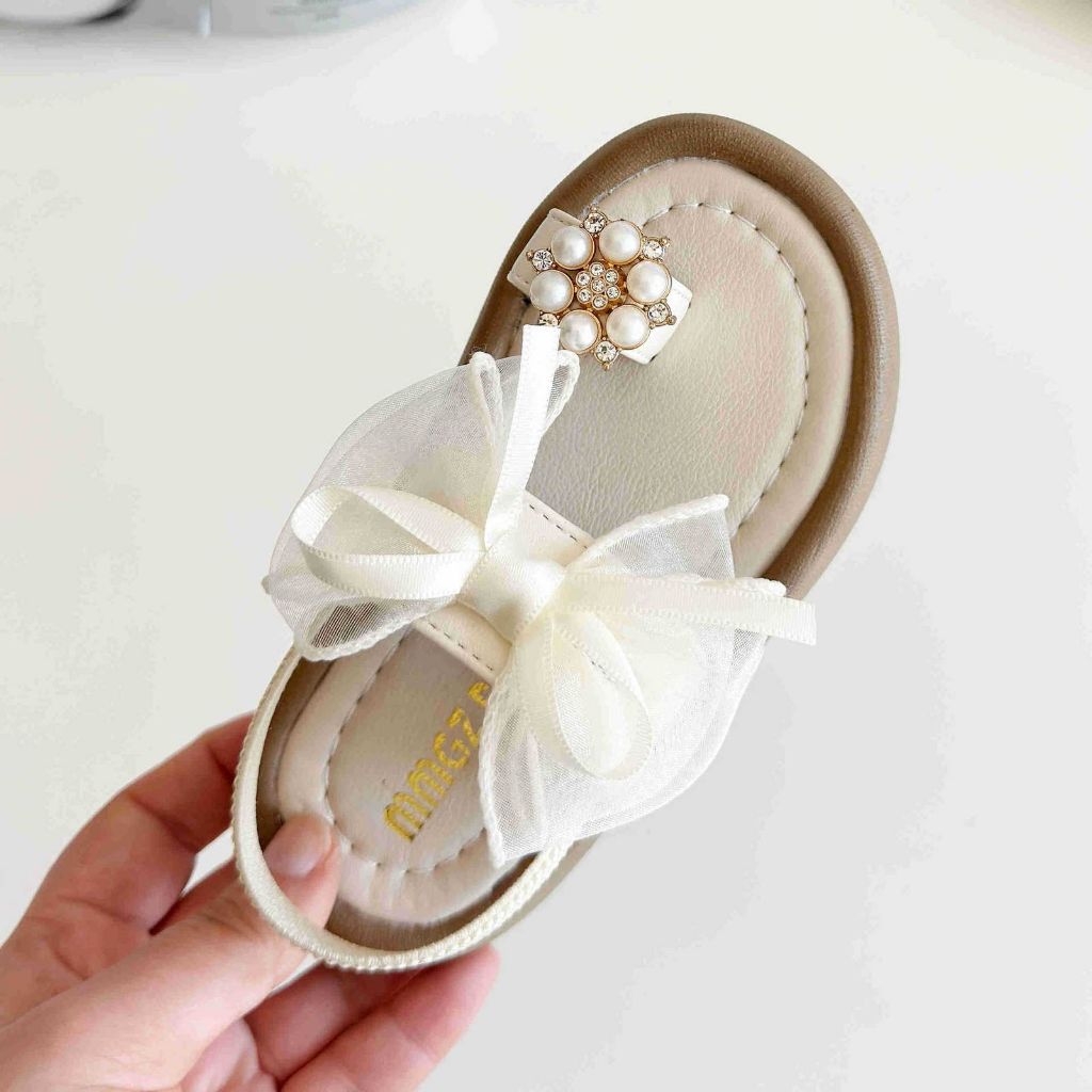 (LOLI-JKT) SD- V7767 SANDAL FLAT ANAK MUTIARA BUNGA DEPAN PITA TIMBUL 3 WARNA SIZE 21-35