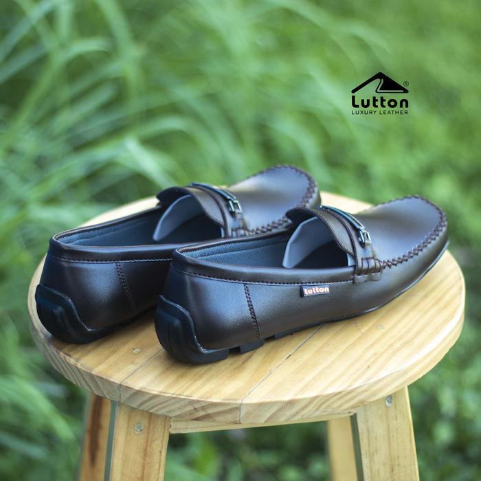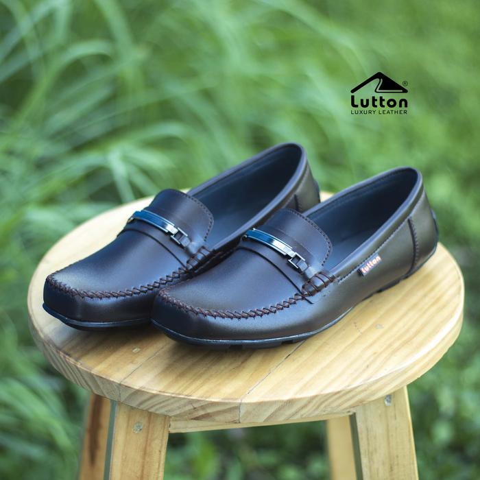 SEPATU MOCCASIN PRIA LUTTON A1 SLIP ON KULIT SINTETIS – HITAM COKELAT NYAMAN ELEGAN SHOES - HITAM, 39