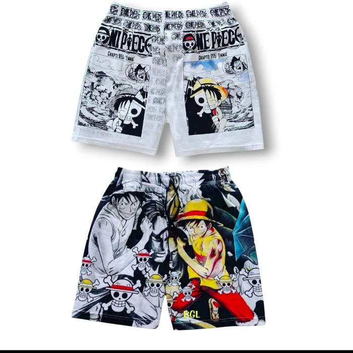 GROSIR 4 PCS CELANA CARACTER ONE PIECE CELANA PENDEK ANAK KARAKTER - 2 PCS ONE PIECE, 7-9 TAHUN