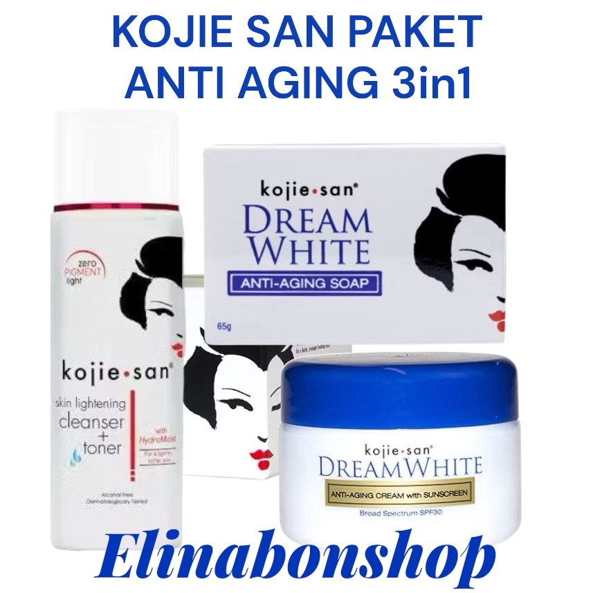 Kojie san Paket 3in1 Pencerah | Anti Aging | Moist Cream | Face Wash | Face Toner