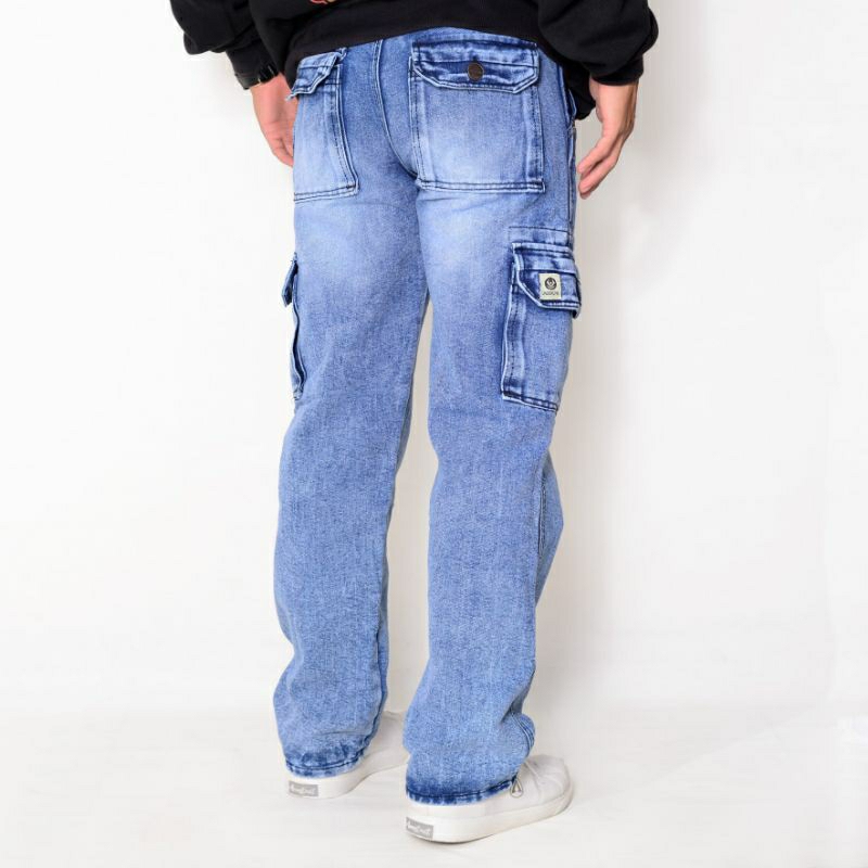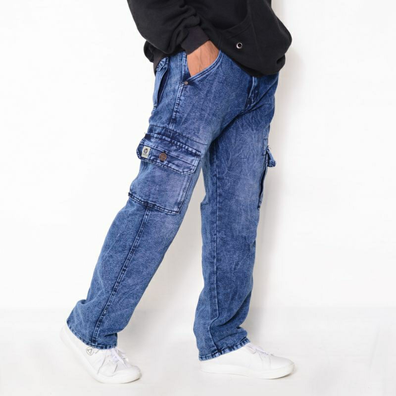 CELANA CARGO JEANS PRIA MODEL SETANDAR BAGGY,CELANA CARGO DENIM SETANDAR LURUS