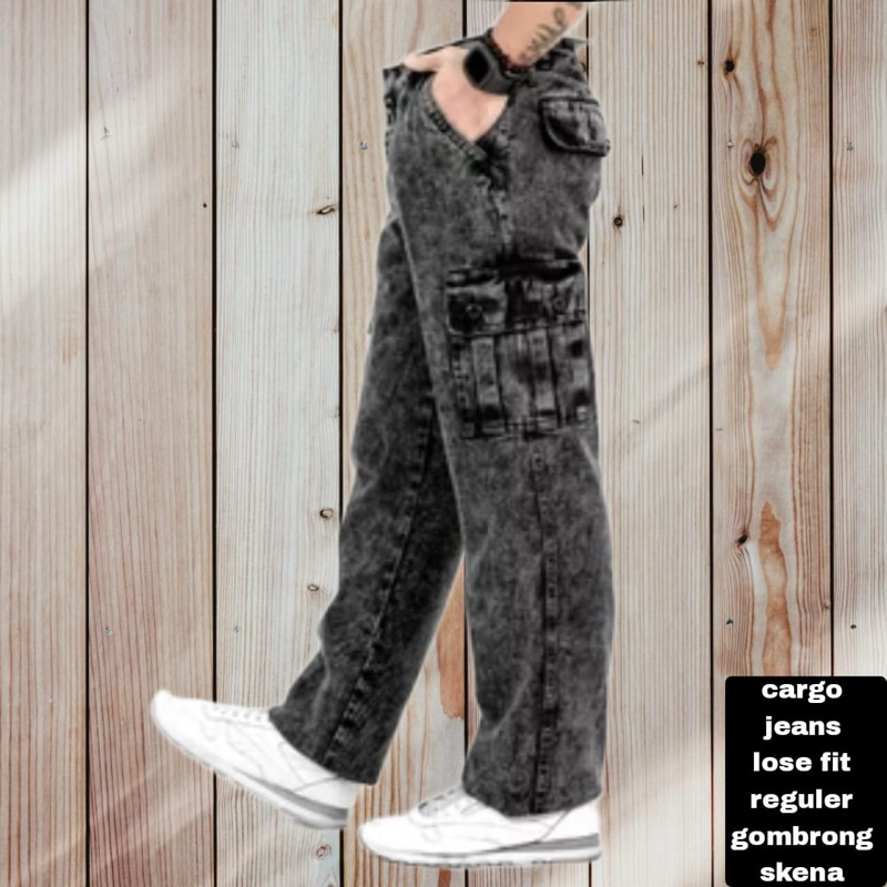Celana Cargo Jeans Pria Loose Fit Reguler Gombrong Skena / Cargo Pants Jeans Reguler Standard Denim / Celana Pria Panjang Dewasa