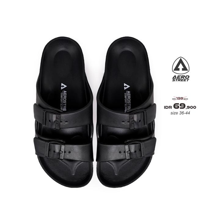 AEROSTREET 36-44 CONIFER HITAM - SANDAL SENDAL SELOP SLIP ON CASUAL PRIA WANITA AERO STREET ABAAA - 36