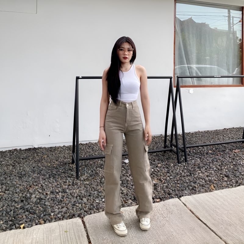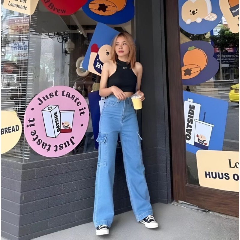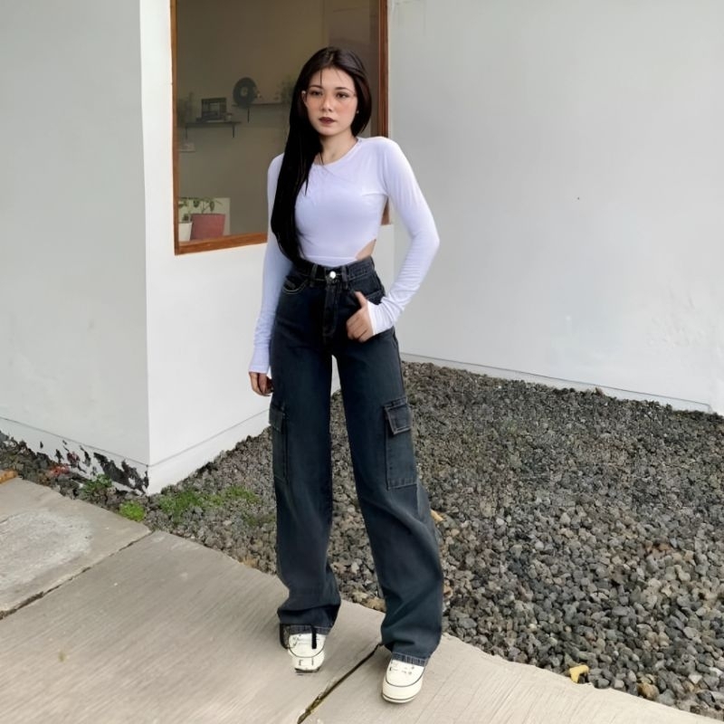 Celana Cargo Jeans Highwaist Wanita | Varian Karet Belakang | Trending Ootd Korean Style