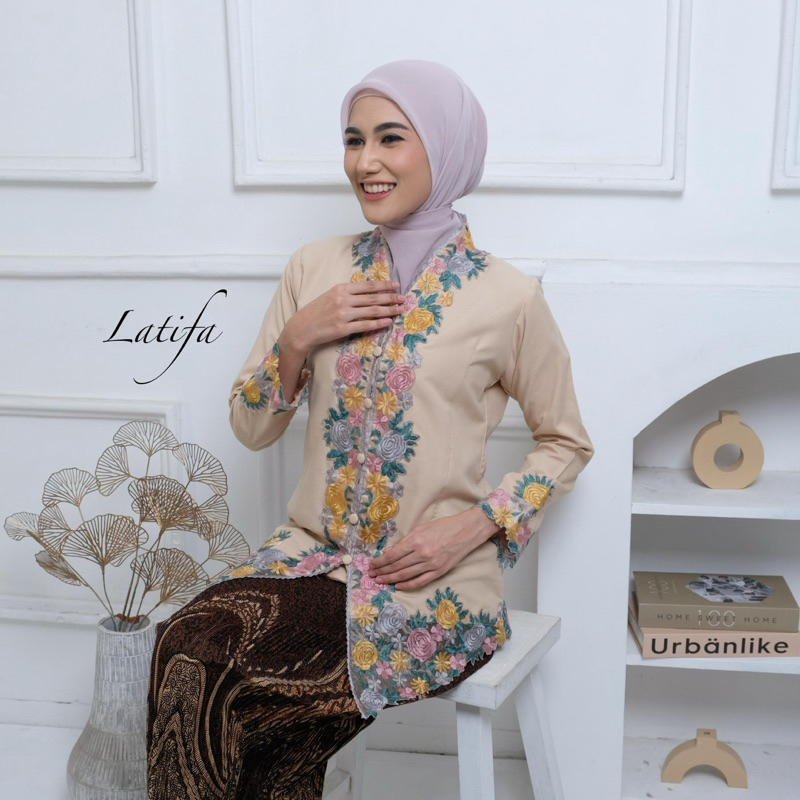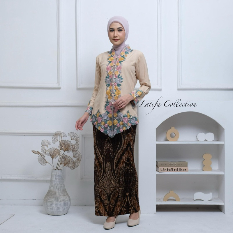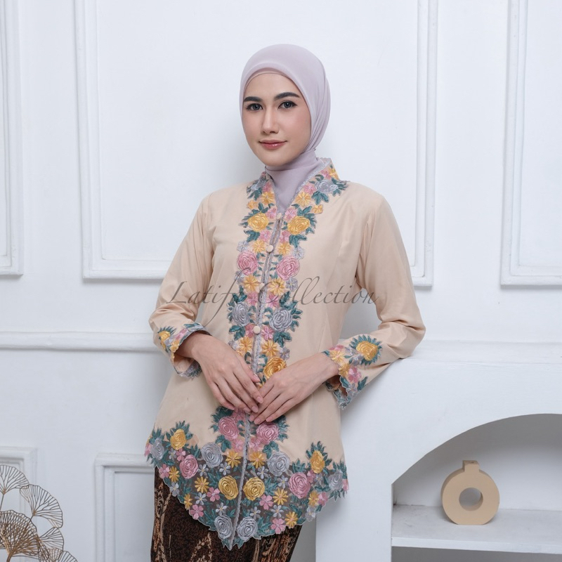 Kebaya Encim Bordir Warna Motif Bunga Lengan Panjang Bahan Katun Mikro