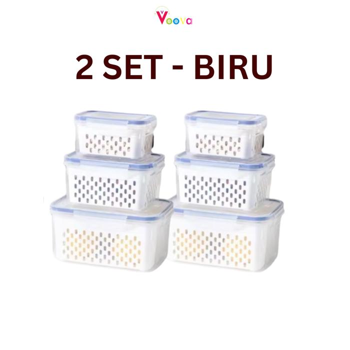 COMBO BUY 1 GET 1 KERANJANG SARING TEMPAT PENYIMPANAN BUAH DAN SAYUR TOPLES KULKAS TOPLES SERBAGUNA BPA FREE FOOD GRADE - BIRU