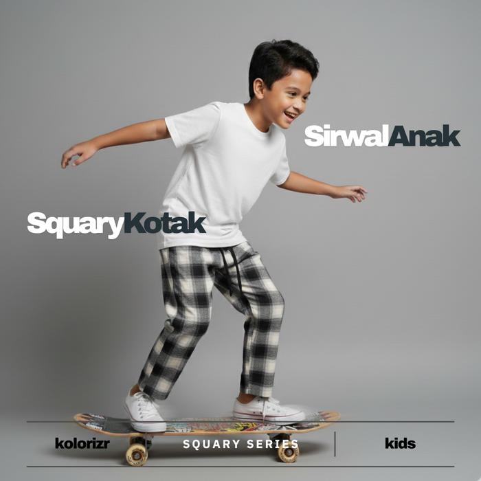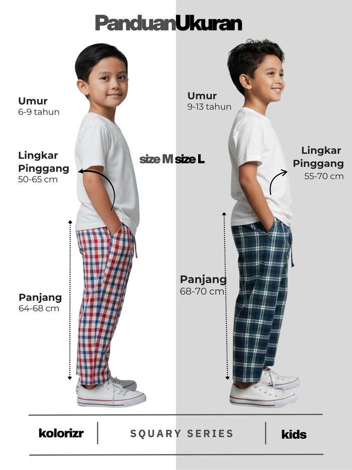 KOLORIZR CELANA SIRWAL ANAK KOTAK-KOTAK ANKLE PANTS KIDS - KOTAK 1, 6-9 TAHUN (M)