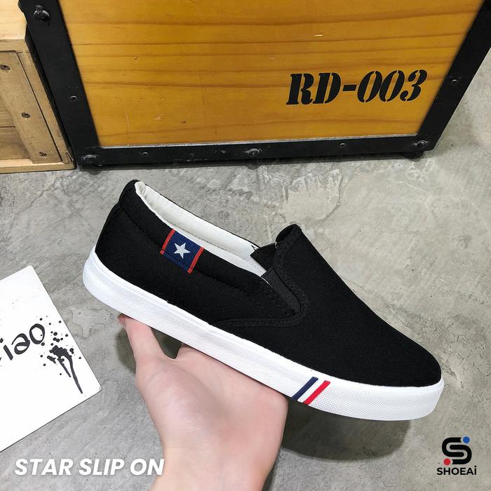 SHOEAI STAR SLIP ON SEPATU KASUAL PRIA WANITA TRENDY SOL KARET FLAT - HITAM, 41