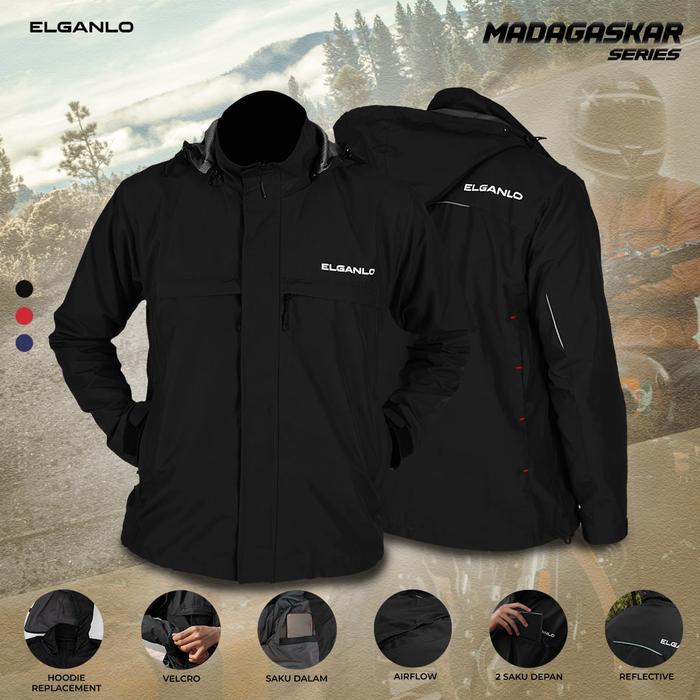 ELGANLO JAKET PARASUT MOTOR TOURING HARIAN WINDBREAKER WATERPROOF MADAGASKAR BLACK UNISEX - BLACK, S