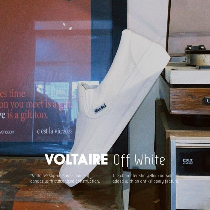 SEPATU THUNDERBEAR - SLIP ON VOLTAIRE OFFWHITE CANVAS FLAT SHOES PRIA SNEAKERS KASUAL - 38