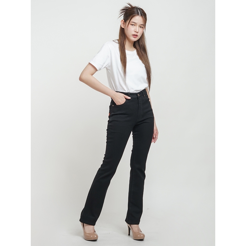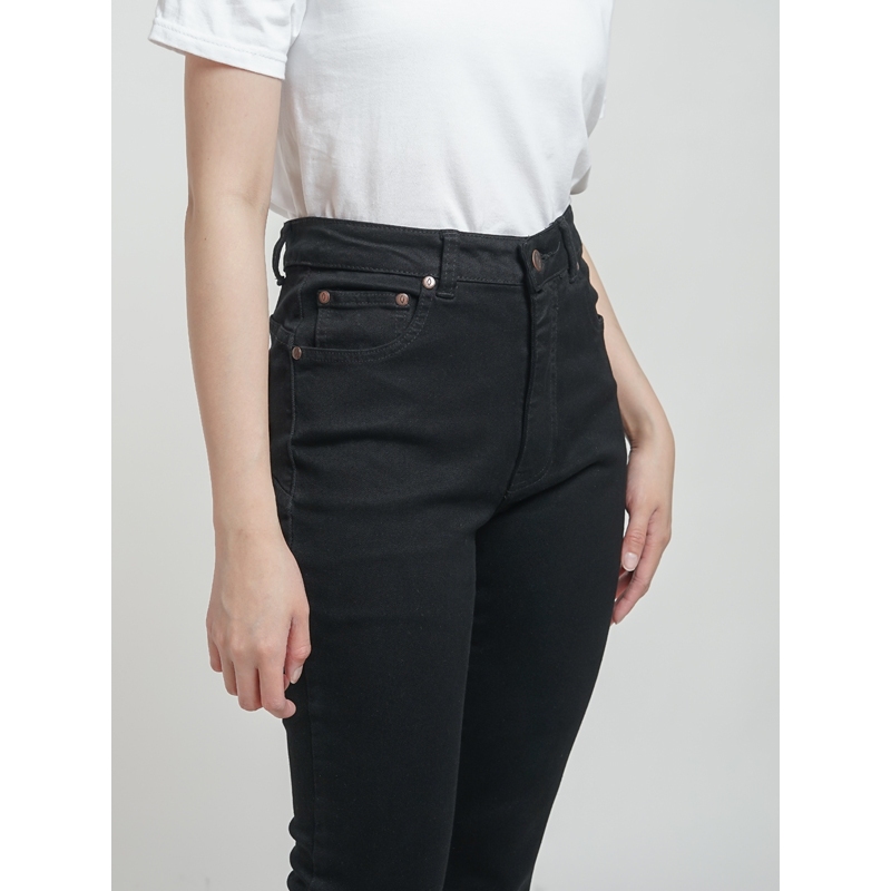 DUST Celana High Rise Bootcut Jeans Kalula All Black Comfease (D. 31300-BC)