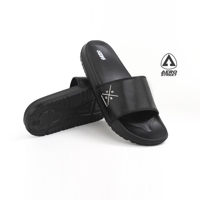 AEROSTREET 39-44 XENON HITAM HITAM - SANDAL SENDAL SELOP SLIP ON CASUAL PRIA WANITA AERO STREET BAAAA - 39