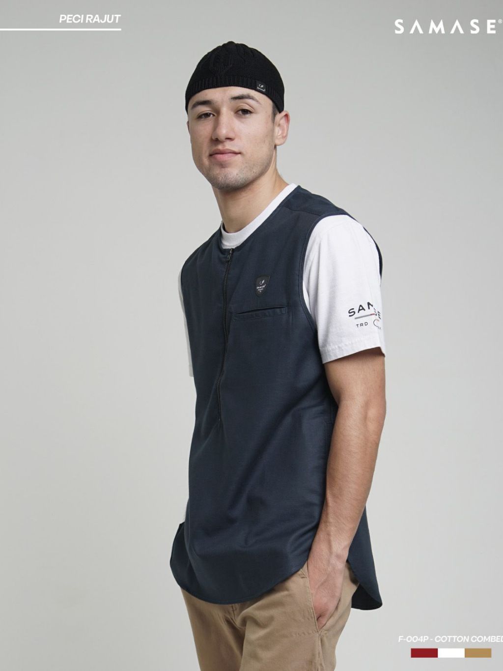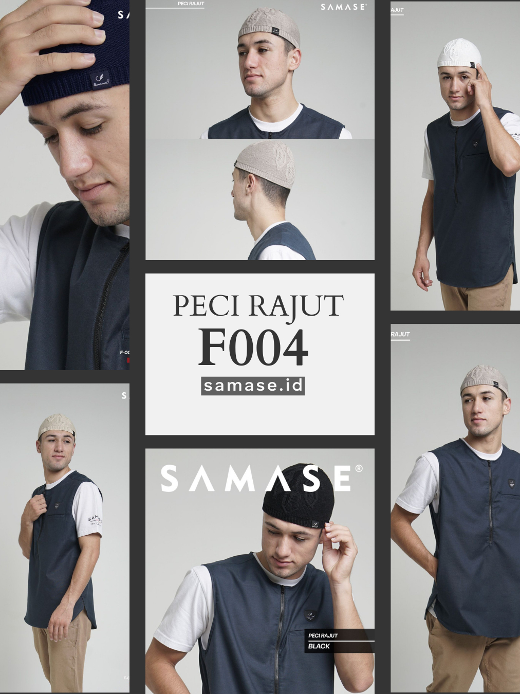 Peci Rajut SAMASE F004P - Warna Hitam Putih Navy Cream Misty Beige untuk Pria Muslim Stylish