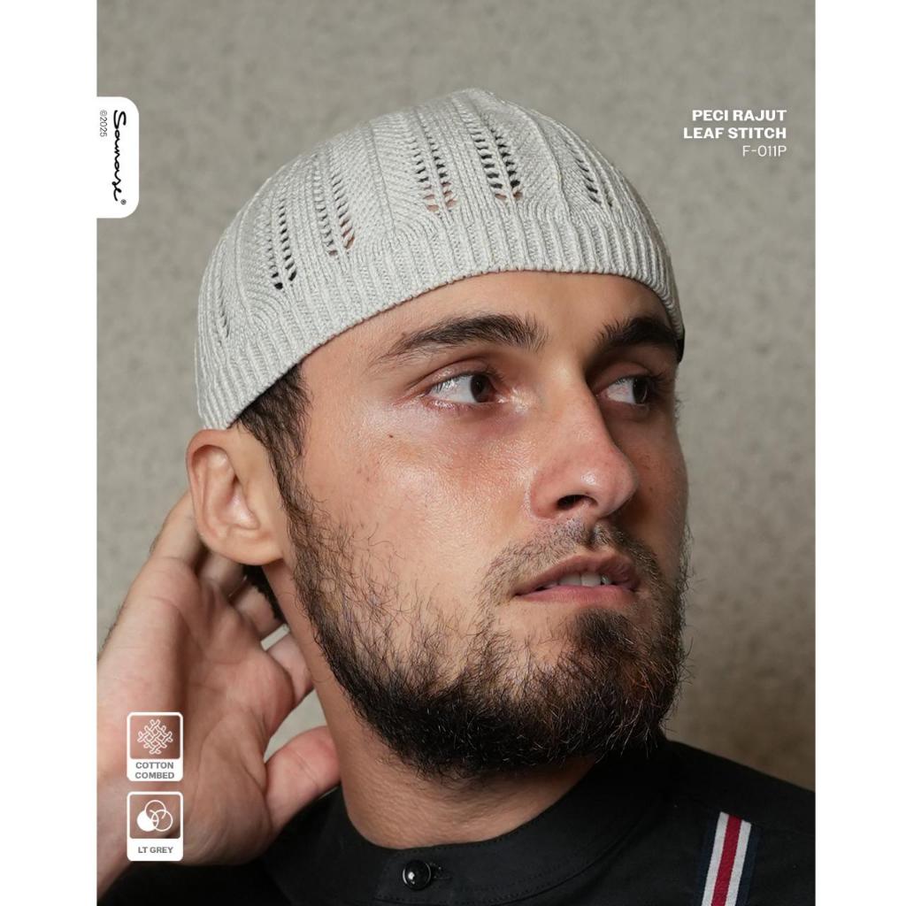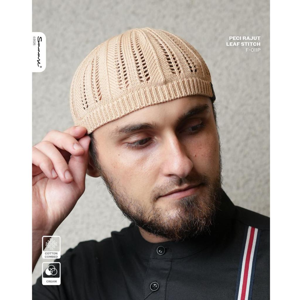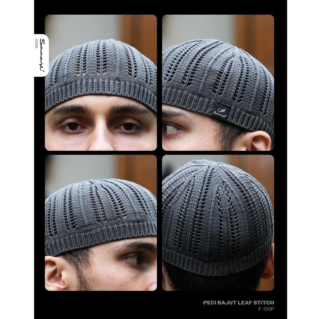Peci Rajut SAMASE Bahan Cotton Combed Premium – Nyaman & Elegan LEAF STITCH F011